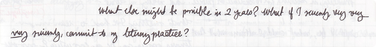 What…might be possible in 2 years? What if I seriously, very very very seriously, commit to my literary practice?…